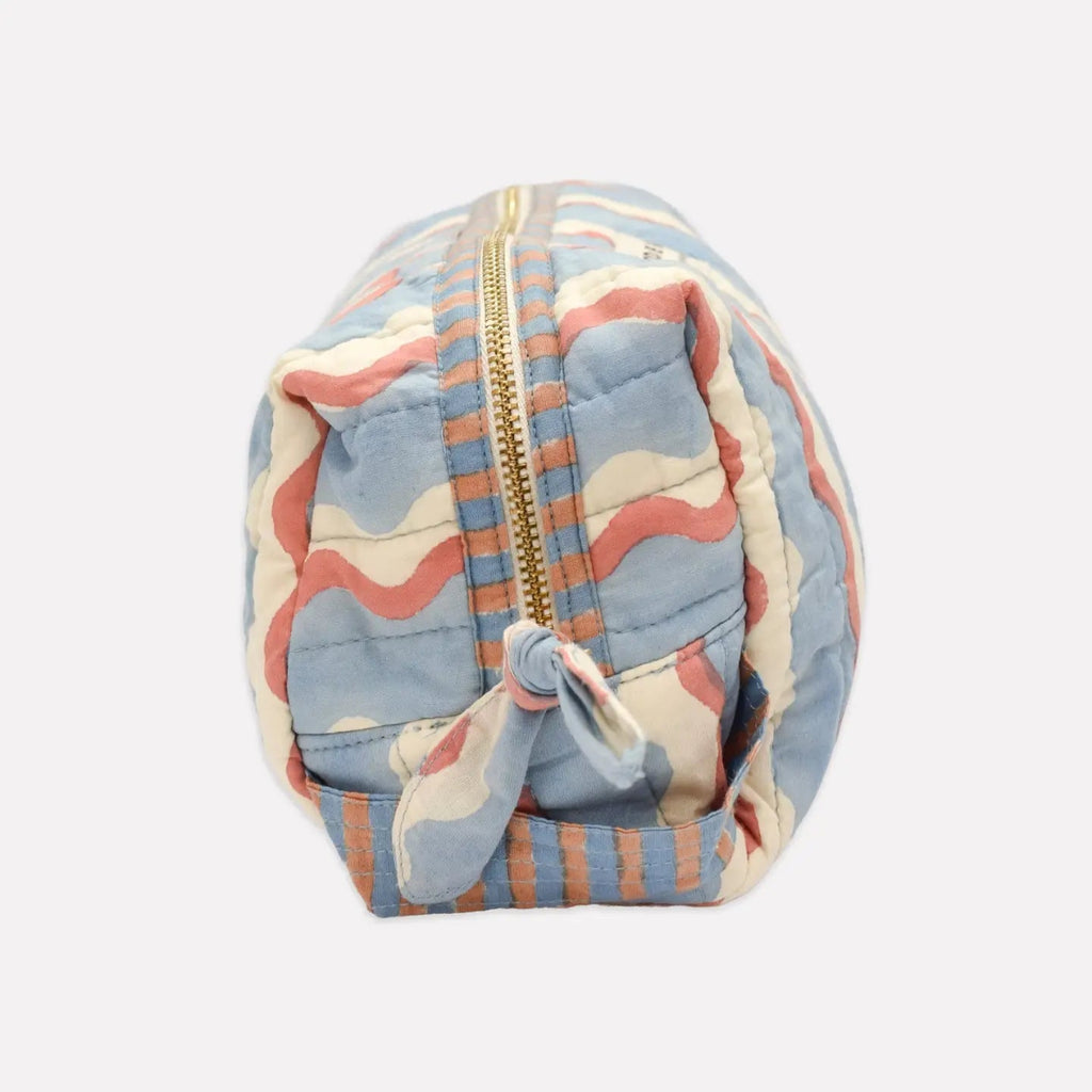 Organic Cotton Block Printed Wash Bag - Blue