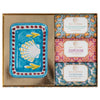 Gift set of 3 luxurious handmade Italian plant based soaps, vegan, cruelty free and cold pressed. Inspired by the scents and colours of the Amalfi coast, with hand painted ceramic soap dish.