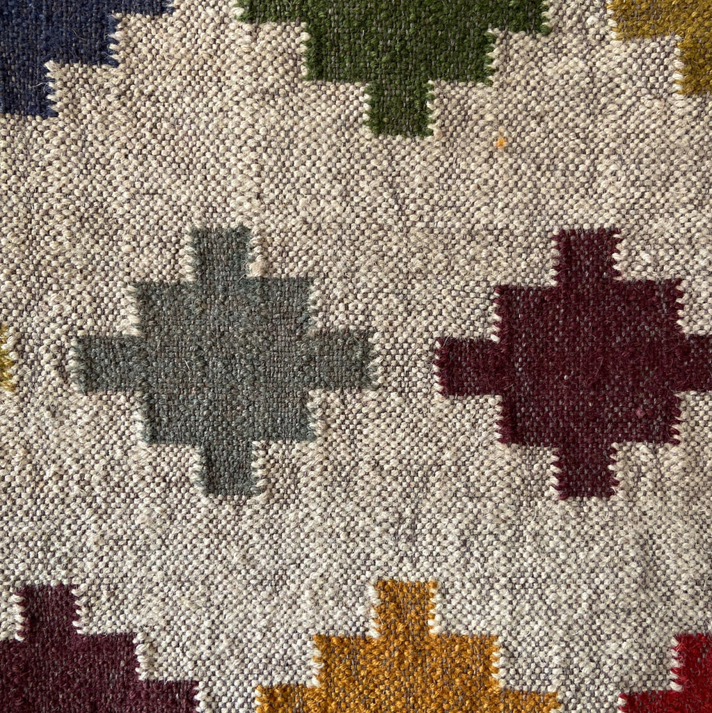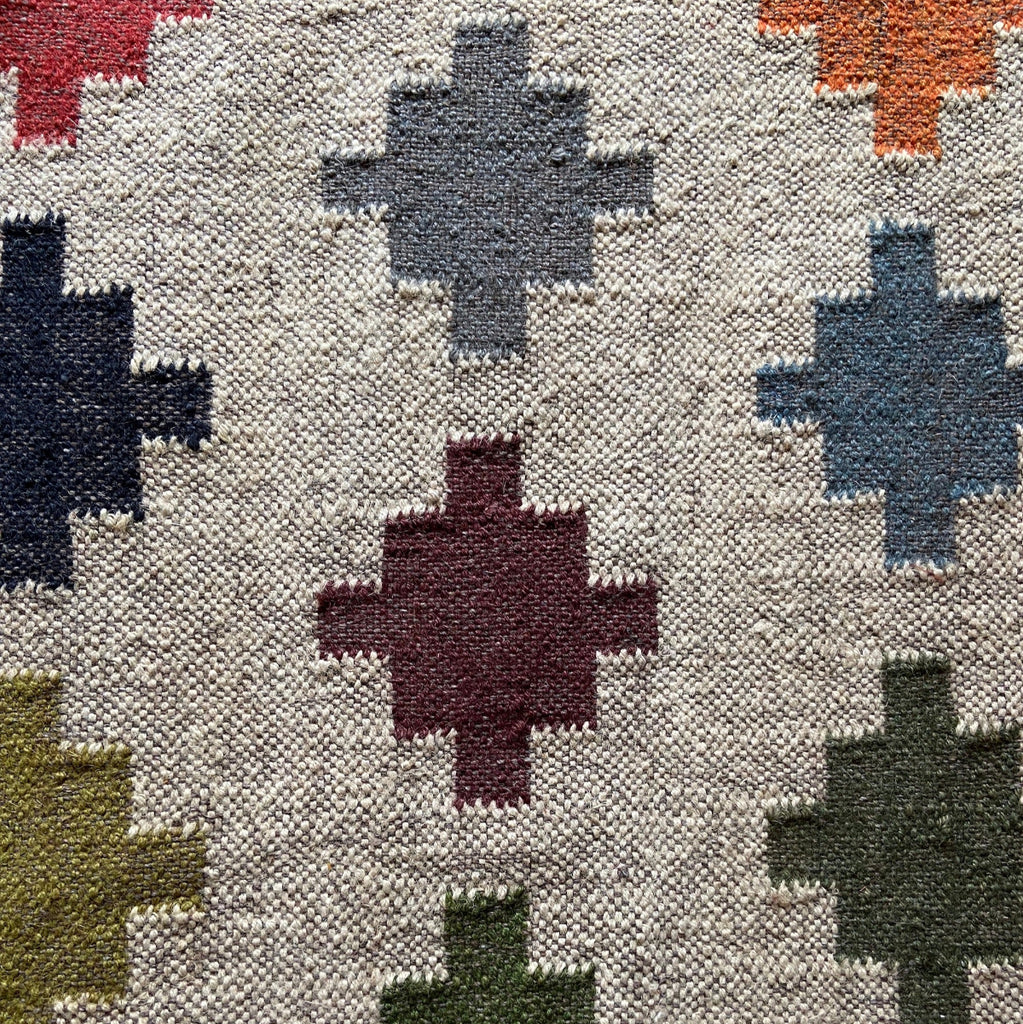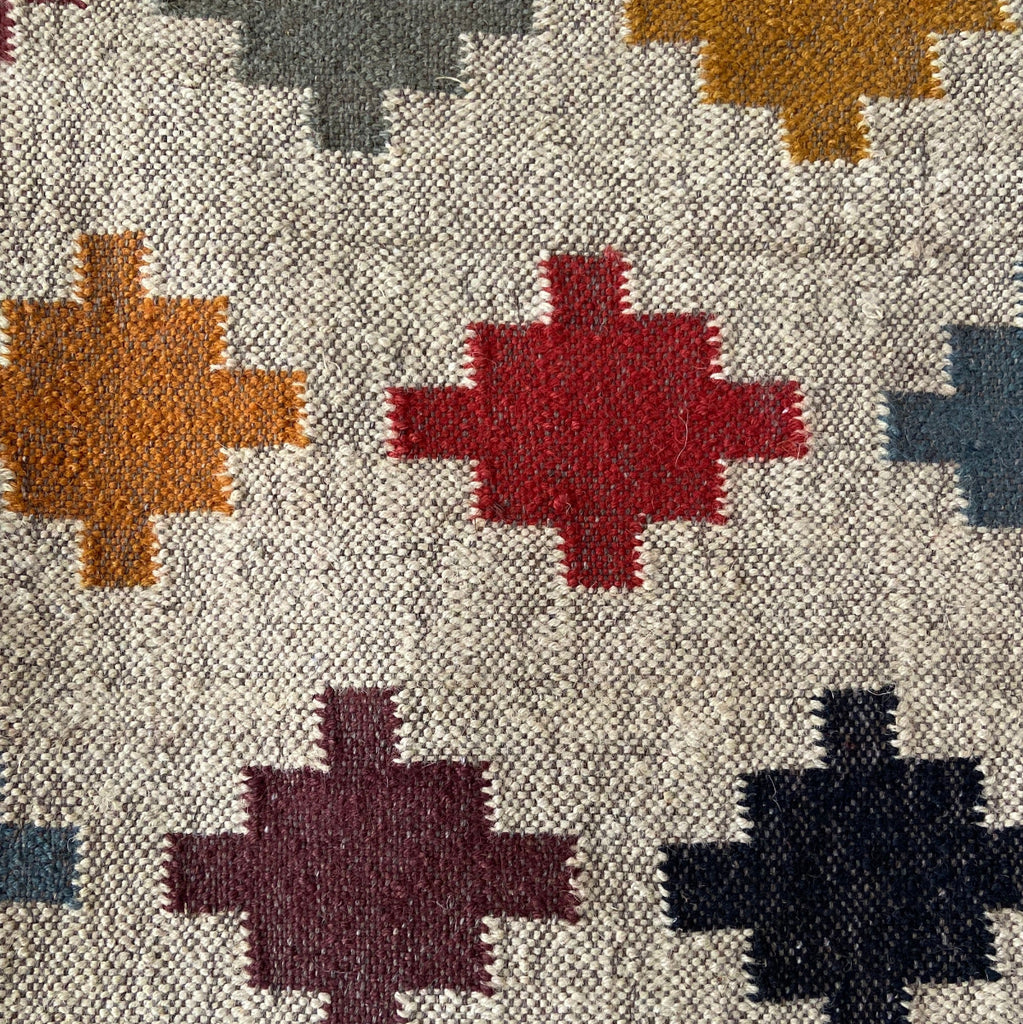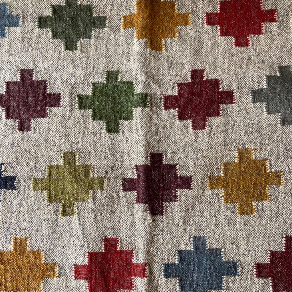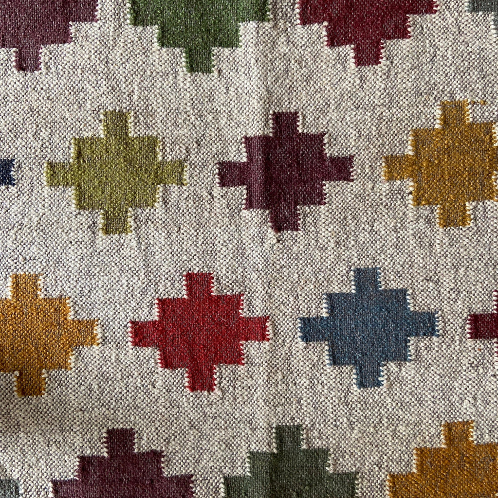 Gorgeous, flat weave Kilim, handmade from Jute and Wool. Kilims are famous for their rich colours, warm tones, and beautiful ethnic motifs traditional in many cultures, ranging from Greek, Armenian, Kurdish, Assyrian, & Turkish.
