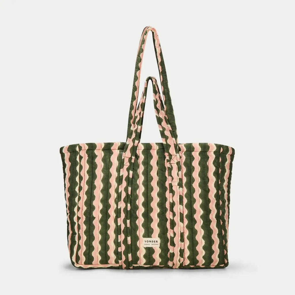 This Quilted Carry All is the ultimate blend of practicality and timeless style. Handcrafted from soft, organic cotton and featuring a beautifully quilted design, it offers ample space for all your essentials, whether you’re heading to the office, running errands, or going on a weekend getaway. The durable, eco-friendly fabric is hand block printed with gentle, AZO-free dyes, ensuring both a sustainable and luxurious experience. Handy inner pocket for smaller items.