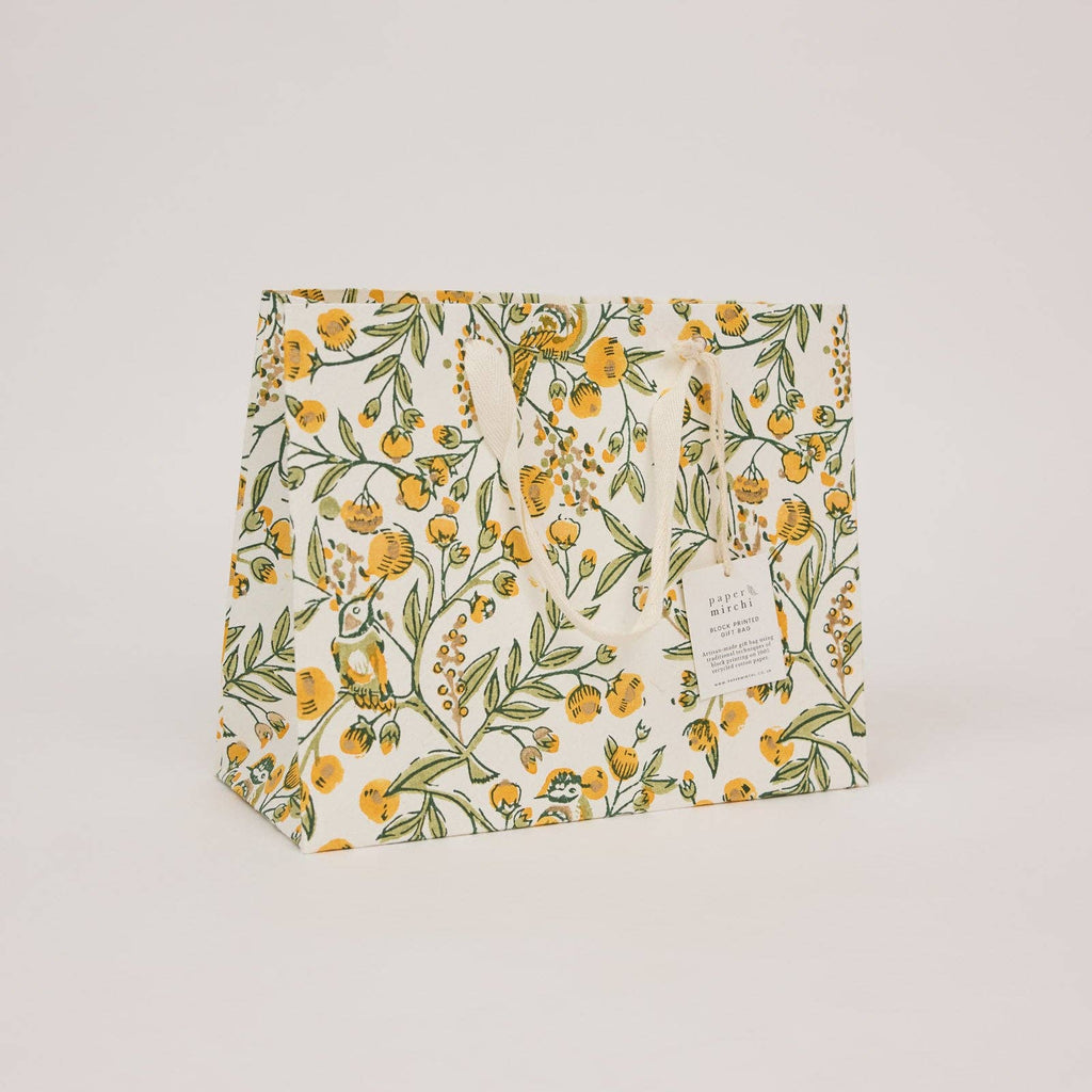 A beautiful selection of luxury block printed gift bags. Each one is made from strong 250gsm recycled cotton card paper in colours and designs complementing the gift wrap range. Every bag is hand block printed using traditional techniques making each piece a little work of art.