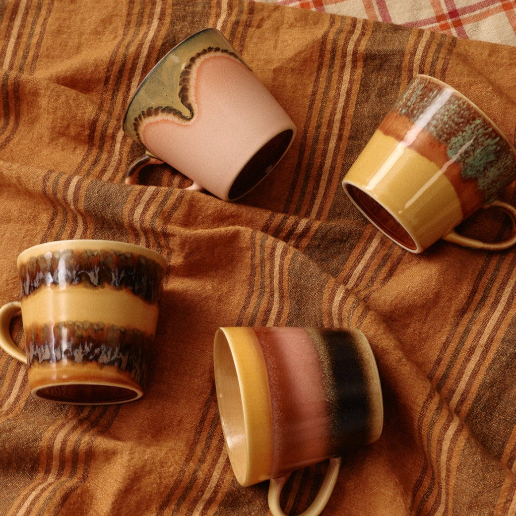 Gorgeous Cappuccino mug from HKLivings 70's Ceramics collection called Cliff. The beautiful reactive glaze in yellows and browns creates a unique and interesting mug. Mix and match with our other 70's ceramic pieces.