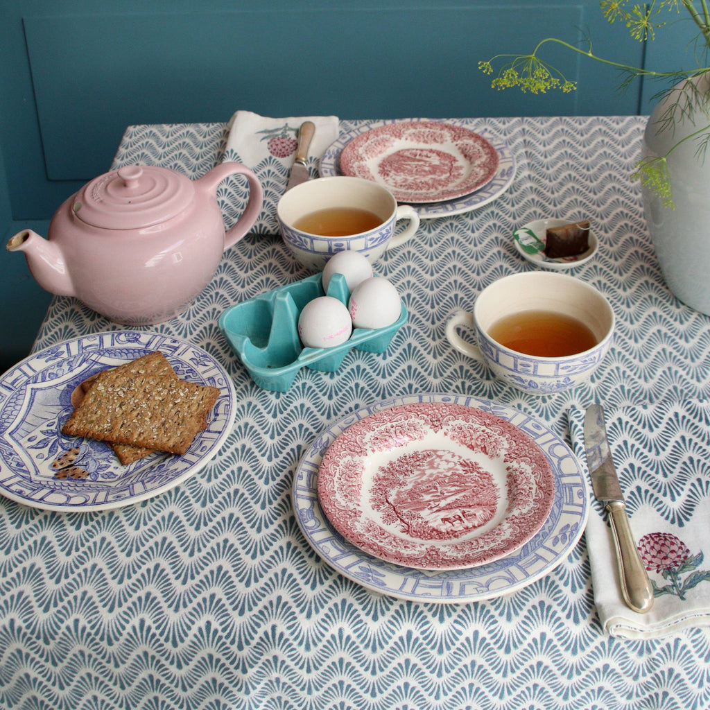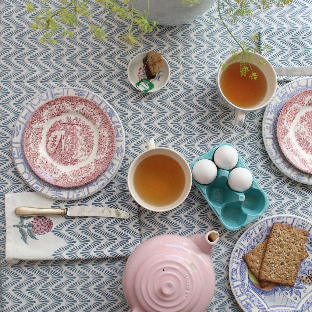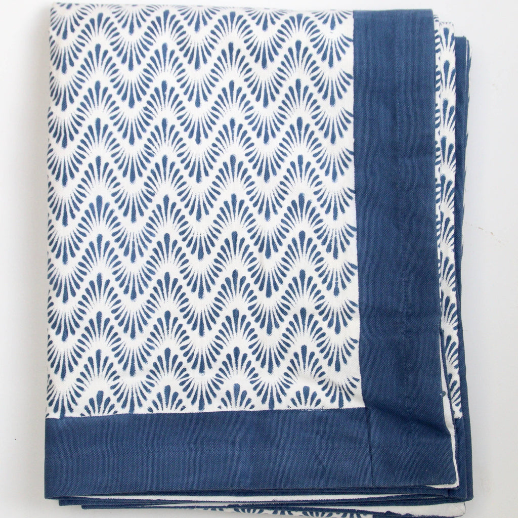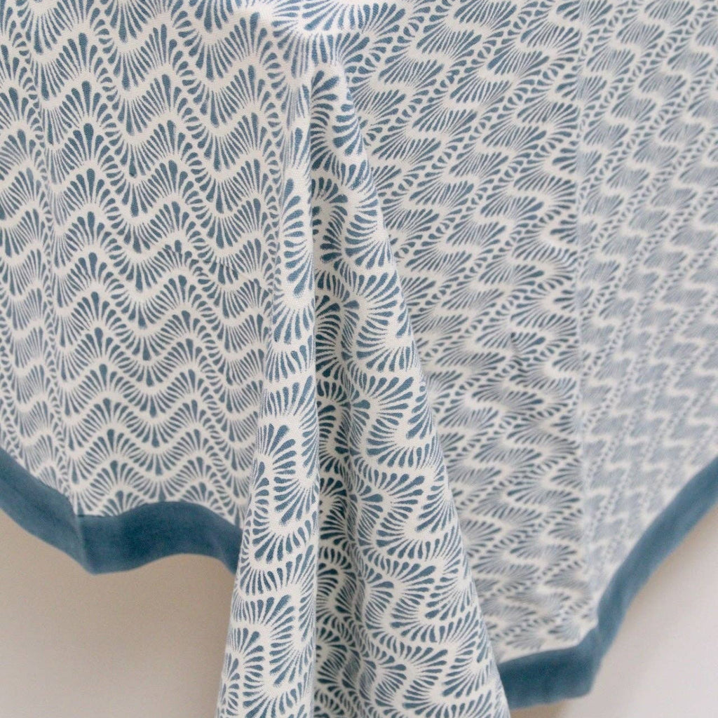 Block Print Tablecloth - Blue Waves