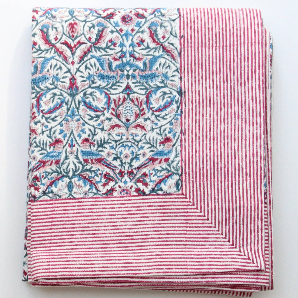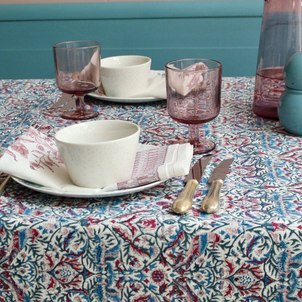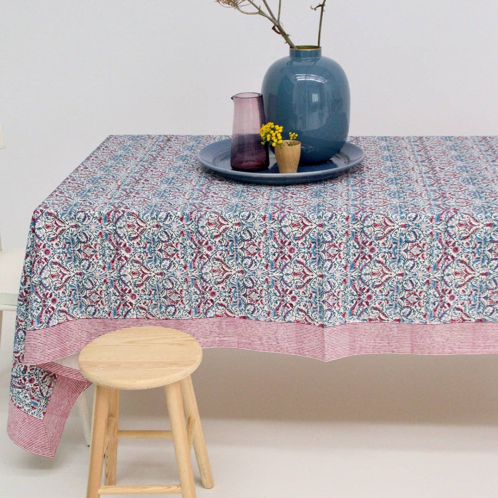 Beautiful hand block printed cotton tablecloths from India. These pieces are made by skilled block printers and sourced from fair trade/fair made small businesses.