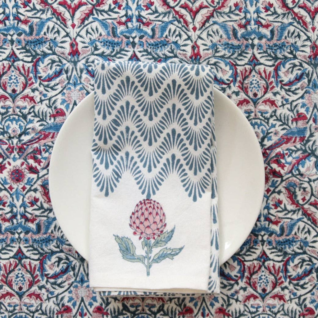 Beautiful hand block printed cotton napkins from India. These pieces are made by skilled block printers and sourced from fair trade/fair made small businesses.
