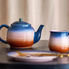 The Tatum Teapot with tea leaf strainer by Bloomingville is a stoneware teapot with a glazed surface that creates a beautiful mix of deep blue, pink, and reddish rust tones. The ribbed structure adds a calm and harmonious look. Small variations in colour and pattern may occur, making each teapot unique.