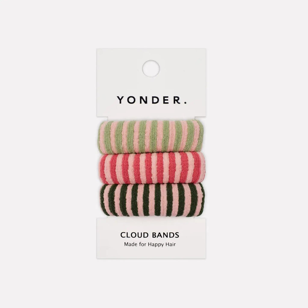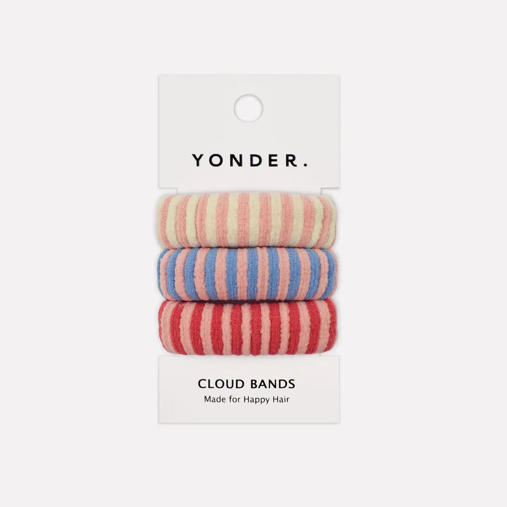 Add a splash of joy to your day with these candy stripe Cloud Bands. Each set includes 3 playful bands in a mix of 5 vibrant colourways, perfect for brightening your style.