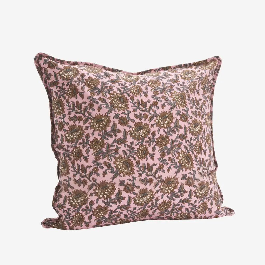 Pretty Pink, nougat, grey cotton cushion cover. Designed. by Madam Stoltz, this will give your sofa or bed a lovely relaxed scandi feel to it with this timeless design. Would look gorgeous with linens and cottons on your bed.
