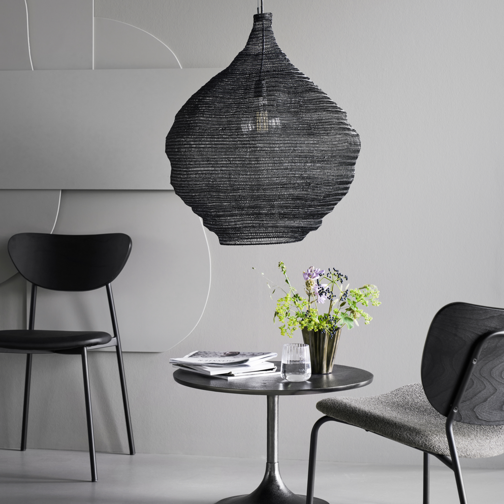 Looking for the final touch to your home decor? This large pendant in black mesh lets the light shine through to create an inviting atmosphere. Even though the materials hint at an industrial touch, the design suits any interior style due to its versatility; from boho to contemporary and minimalist. Hang the pendant from House Doctor above your dinner table, in the corner of the living room or in your hallway to add a wonderful glow.
