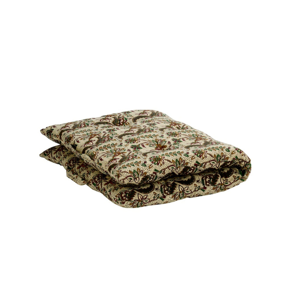 Beautifully soft reversible patterned cotton mattress, from Danish brand Madam Stoltz. These are perfect for lounging in the garden, as chair seat and back cushions or bench pads. Layer them up with cushions and throws in your sitting room or bedroom, for extra sleep over beds for the children....they are very versatile and perfect for creating that lovely laid back, Balearic holiday vibe at home.