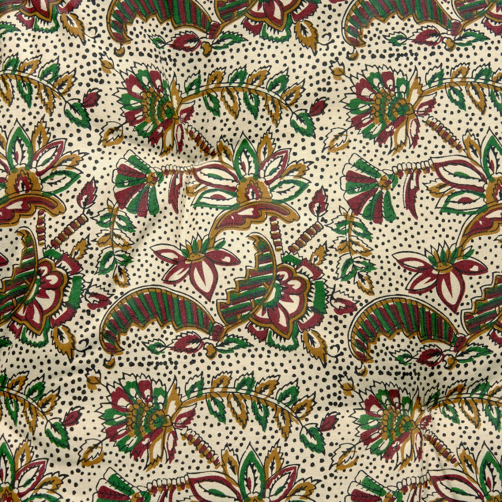 Material: 100% Cotton with cotton filling. Colour: Off white, green, chestnut, mustard