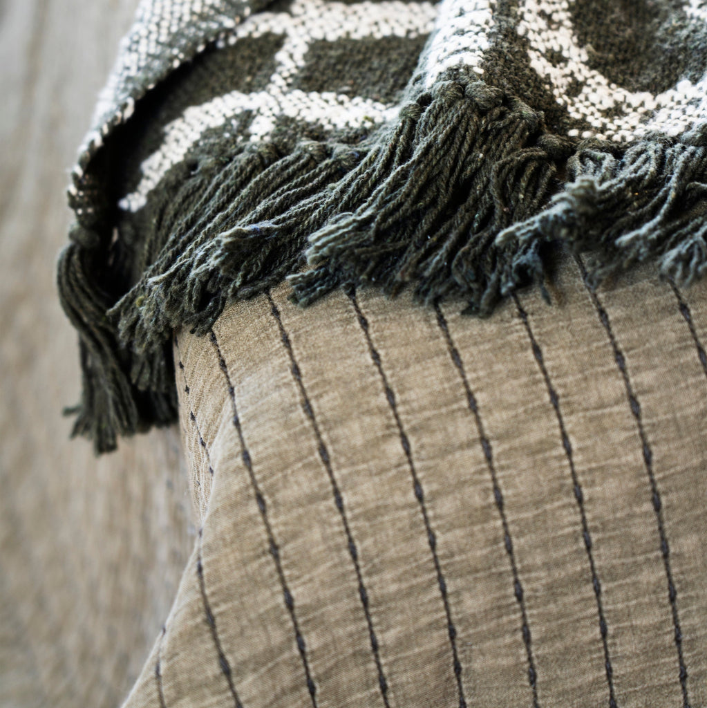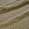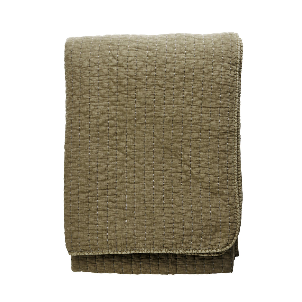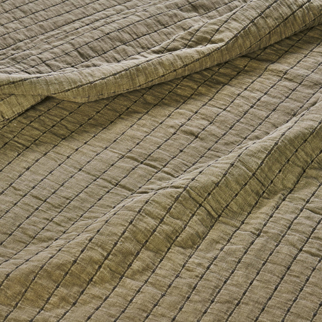 Super soft cotton, quilted, machine washable bedspread/quilt in a khaki green colour with a dark green quilting stitch.