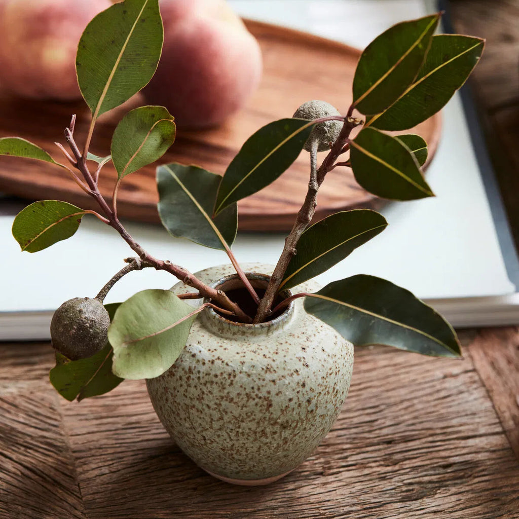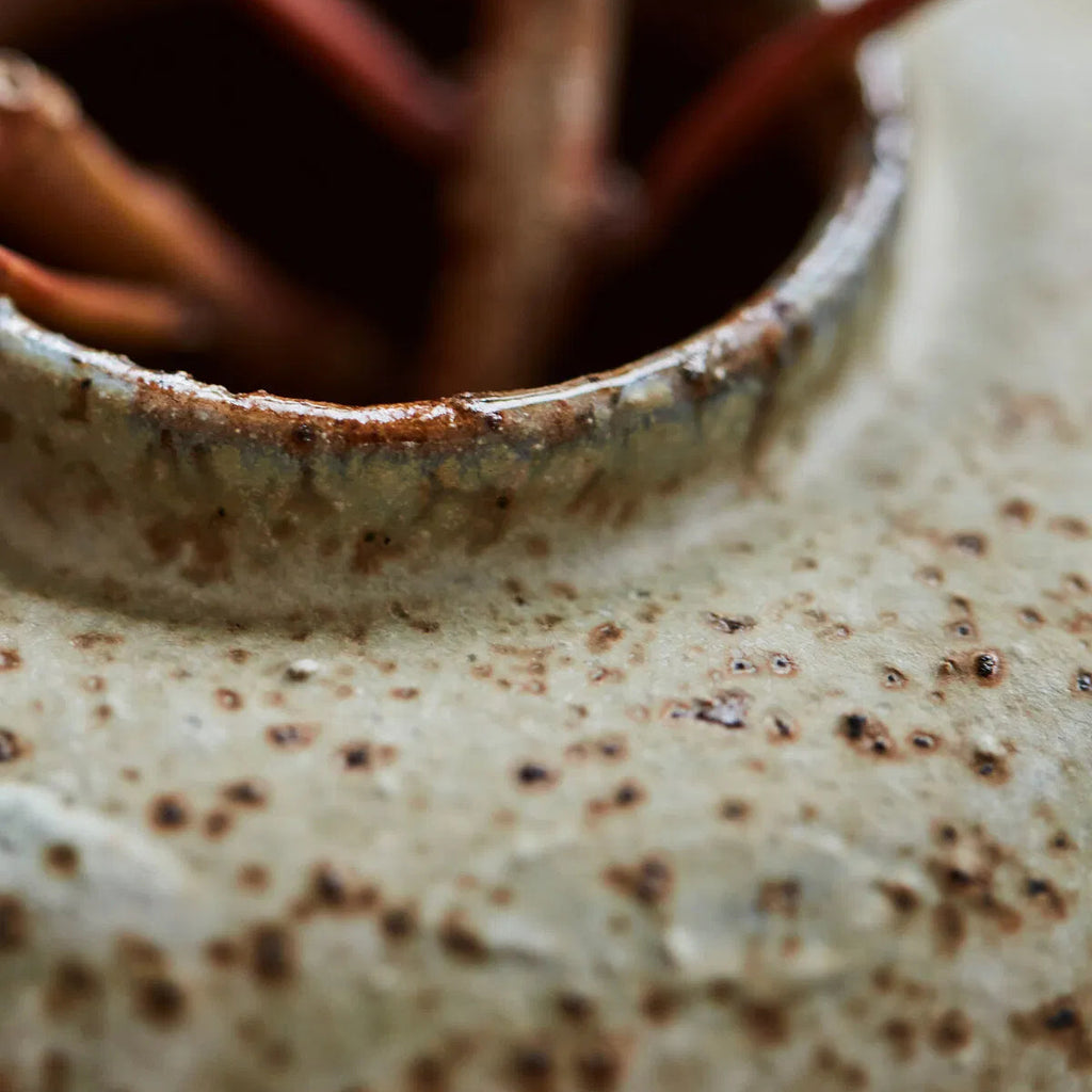 This handmade ceramic vase in warm grey tones is a delightful addition to your home decor. Its compact size and exquisite textured glaze make it perfect for small bouquets or as a decorative accent on your dining table. Enjoy the cosy charm it brings to any setting.