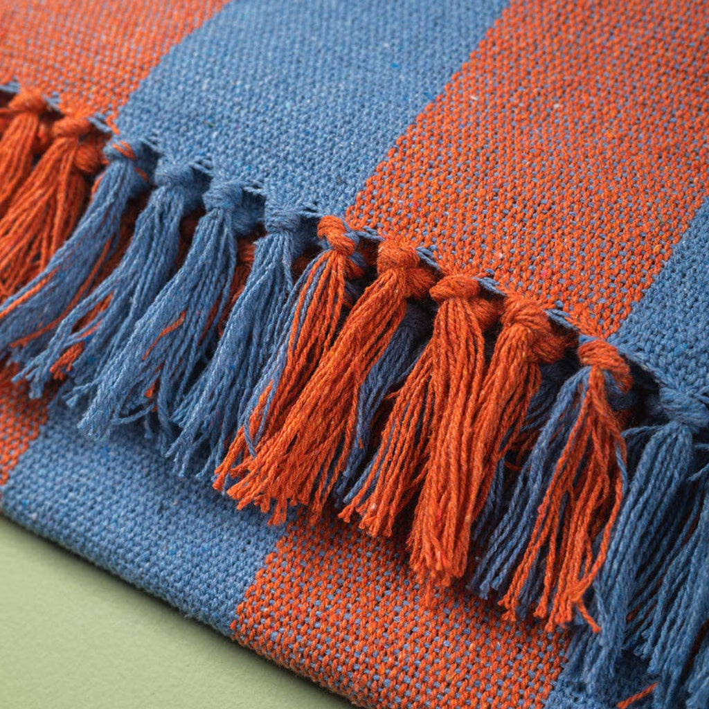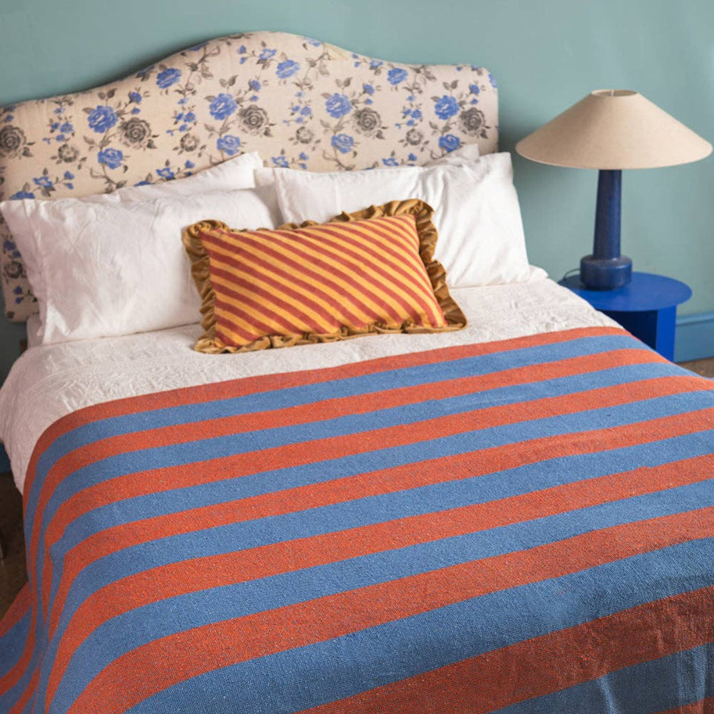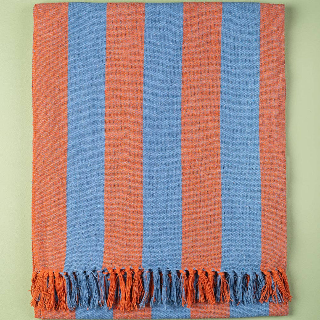 Bold Striped large throws, perfect for either a bedspread or a sofa covering. Pale blue and terracotta orange stripes in this gorgeous soft textured throw and interest and colour to your room.