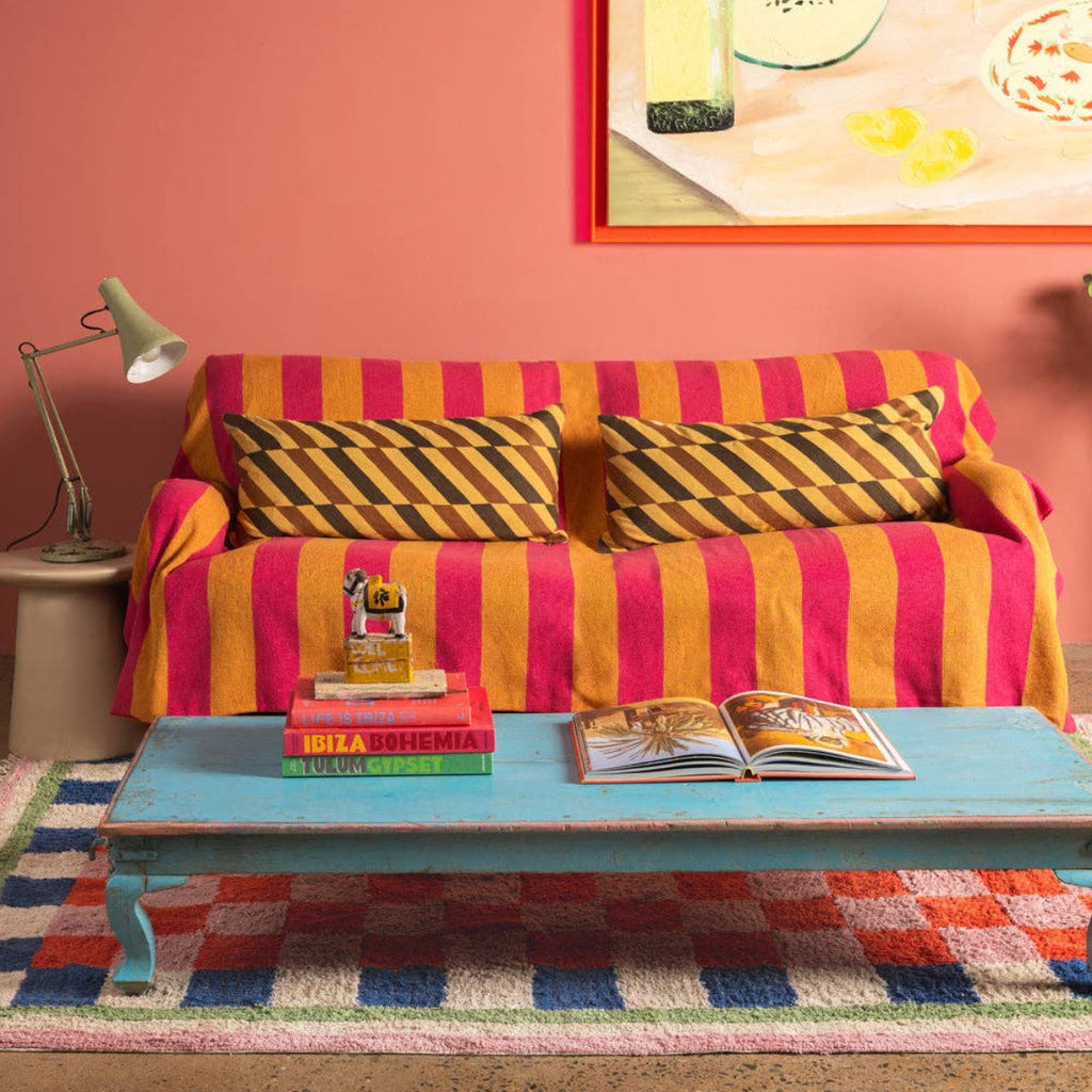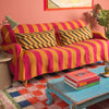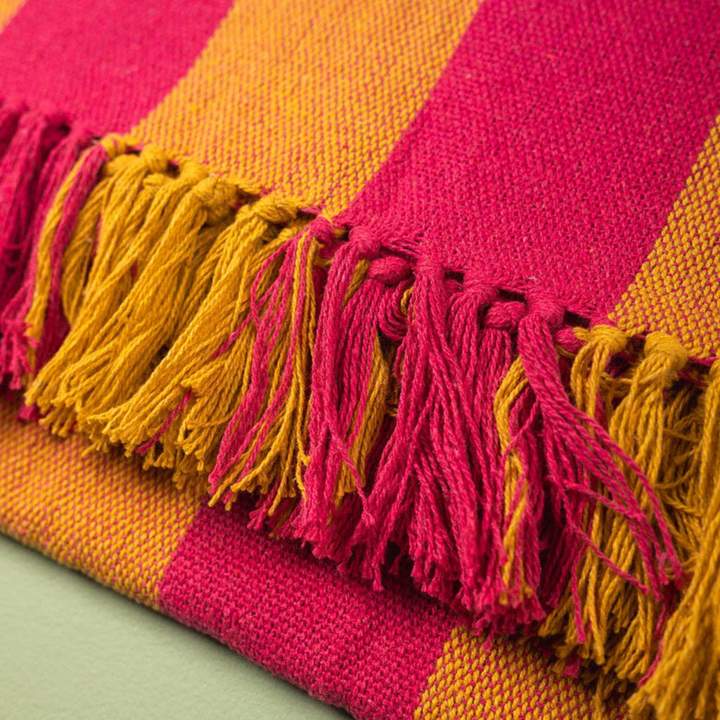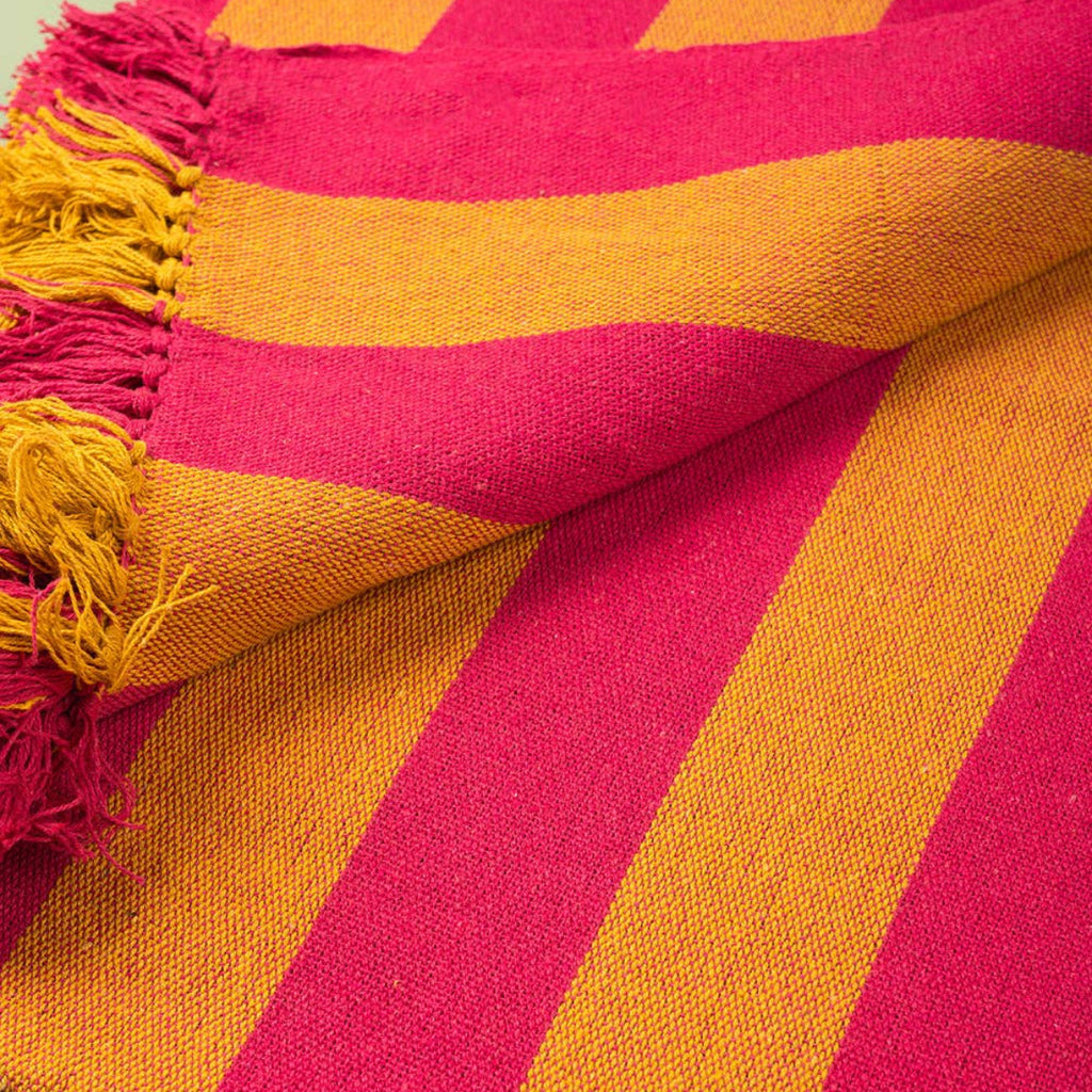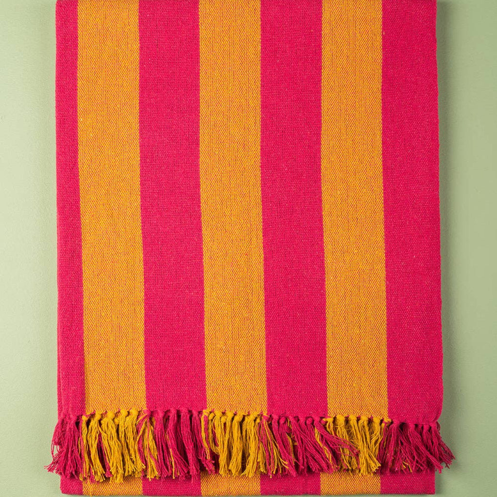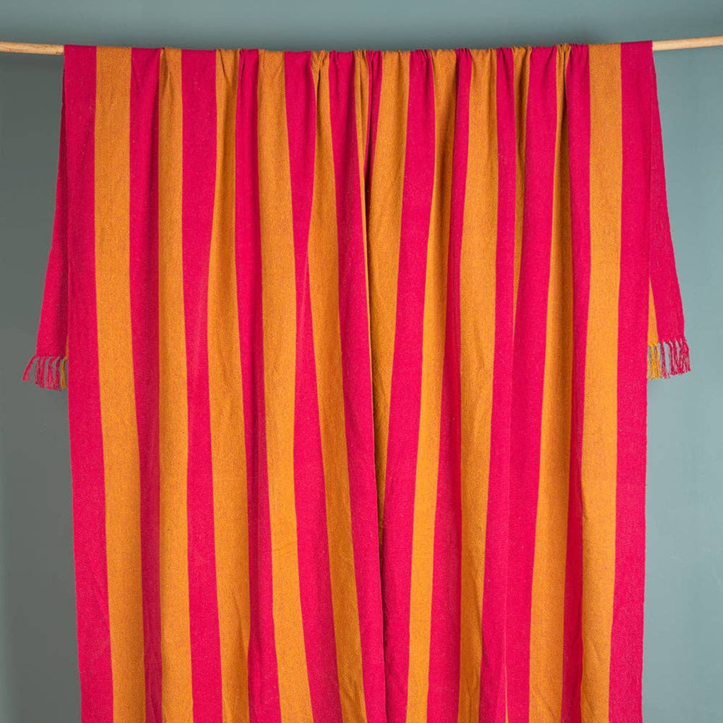 Striped Cotton Bedspread/Large Throw - Fuschia/Yellow