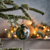 Hand made vintage green glass christmas tree decoration with an engraved leaf pattern  in gold, made by House Doctor