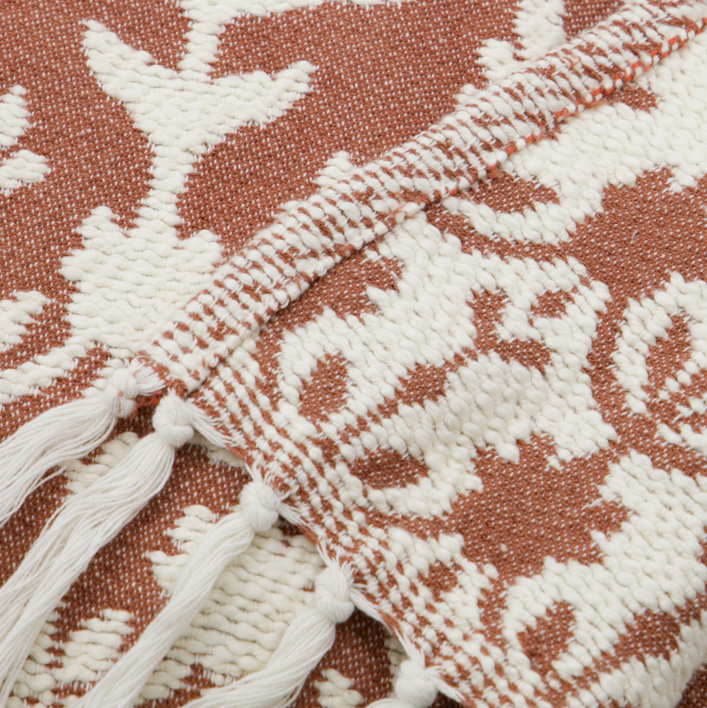 Woven from thick, soft cotton, this throw is in a warm terracotta colour with handmade details, sure to leave a warm impression. Drape it over the sofa for a touch of colour, or lay it across the bed for an extra layer of softness as a bedspread.