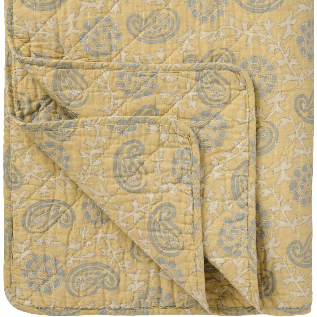 Cotton Quilt - Soft Yellow and Grey Paisley