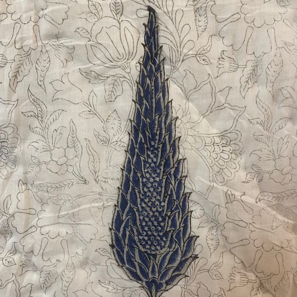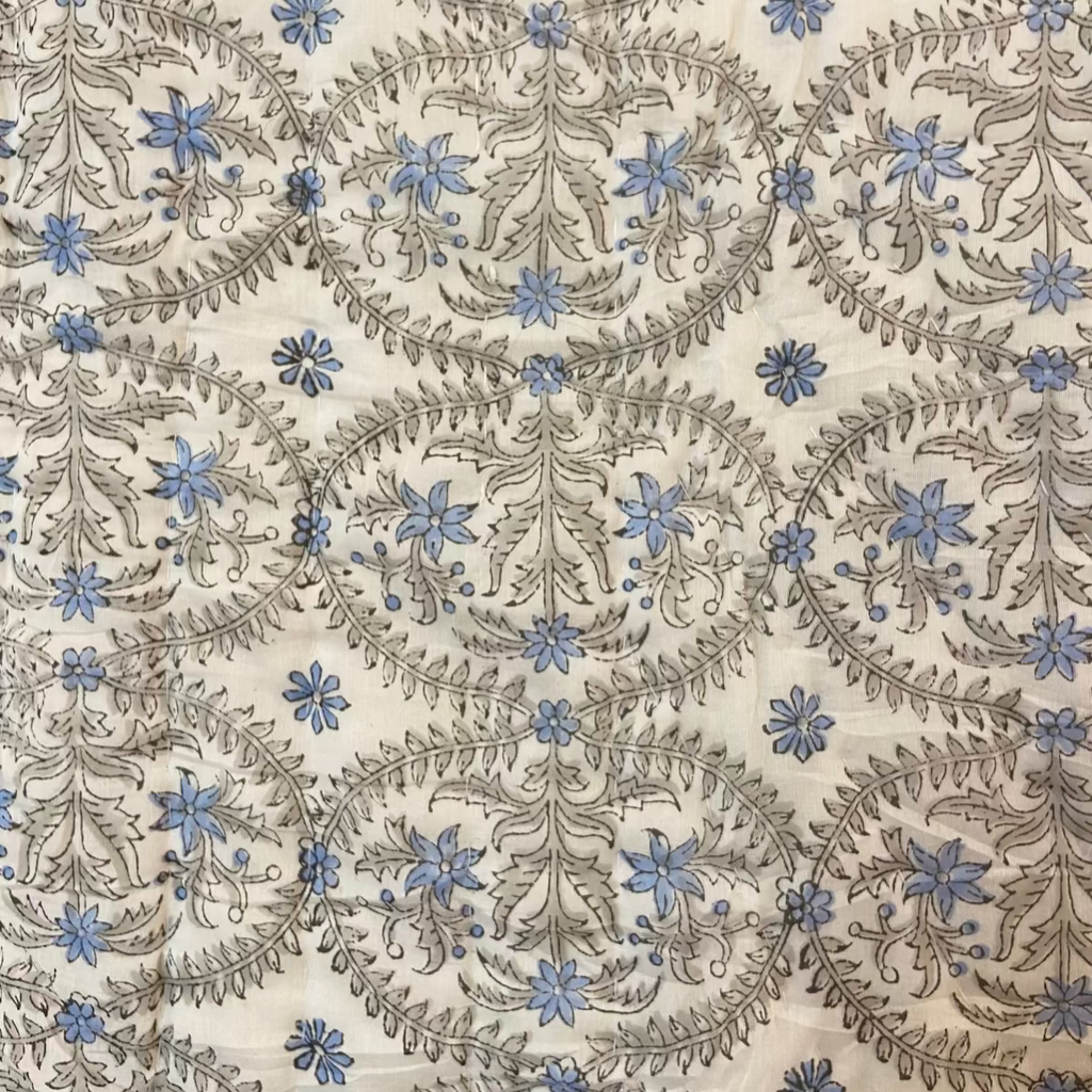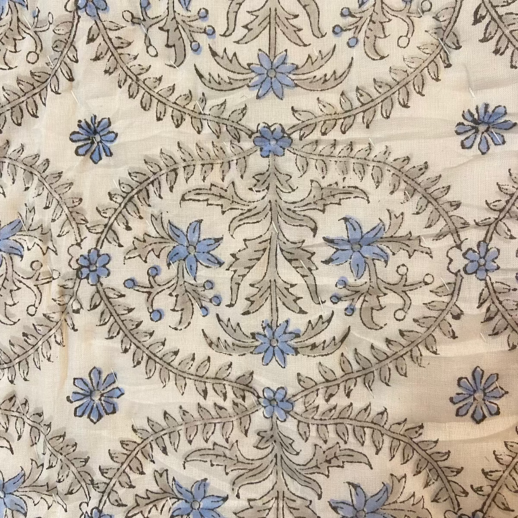 / Reversible Block Print Cotton Quilt - Blue and Grey Tree/Flower