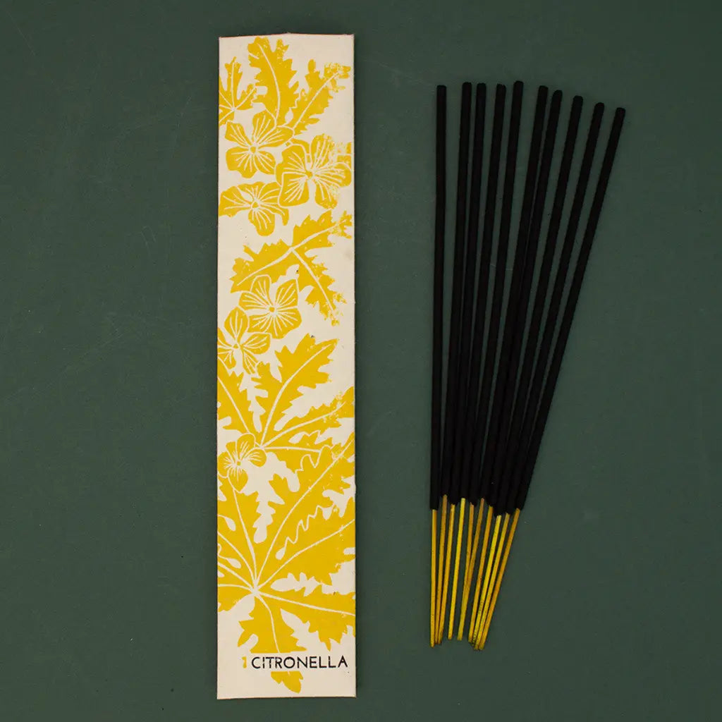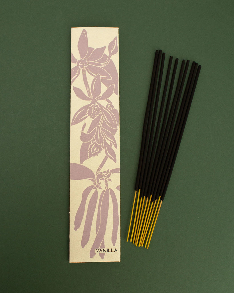These luxury incense sticks are handmade by an organisation supporting disabled artisans in India. Each packet is crafted from eco-friendly recycled paper with a hand screen-printed botanical design.