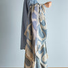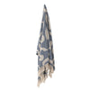 Blue and off white toned soft cotton throw, with fringing along the short edges. The cotton used to make this throw is recycled and beautifully soft. The flower design is printed on one side and plain on the reverse. Warm yourself on the sofa in the evening or on the patio outside; or use as a throw for your bed. This has a lovely relaxed look to it and is soft to touch.