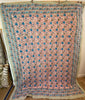 Reversible Block Print Cotton Quilt - Mixed Blues and Pink