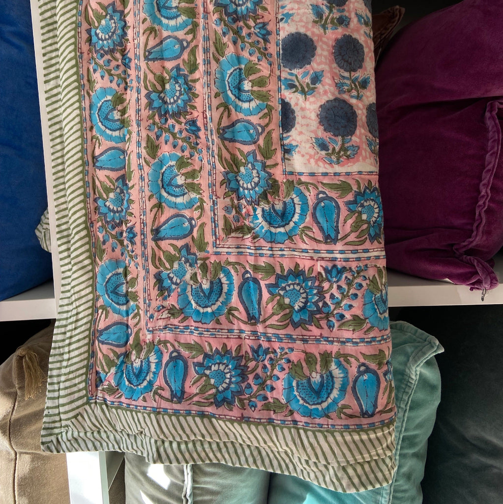 Beautiful super soft reversible quilts, hand made in India using traditional wooden blocks to print the designs. Each piece is slightly different to the next due to them being hand printed, making these really lovely individual pieces.