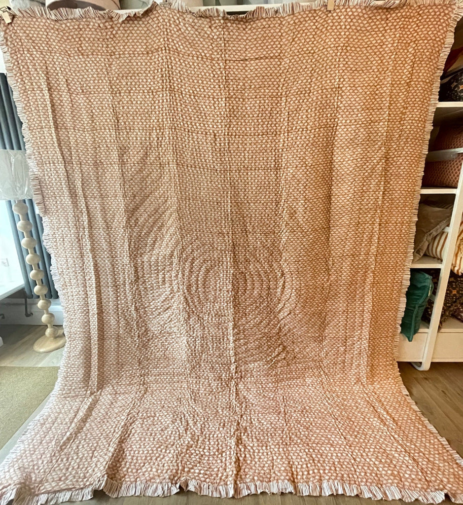 Beautiful super soft reversible quilts, hand made in India using traditional wooden blocks to print the designs. Each piece is slightly different to the next due to them being hand printed, making these really lovely individual pieces.